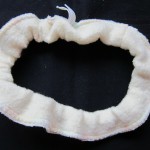 Es wird dem Baby um die Taille angezogen. Eine Einlage (gefalltete Mullwindel) wird vorne und hinten eingeklemmt: